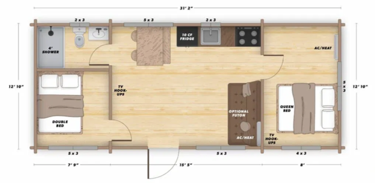 • Futon - YOU MUST BRING YOUR OWN BEDDING FOR FUTON.
